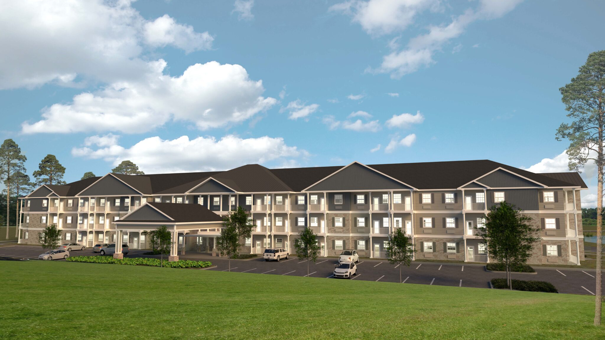 The Viridian is a senior living facility located in New Bern, North Carolina. Each resident enjoys their own apartment as well as plenty of open common areas. A calming color palette of blues and teals is featured throughout.